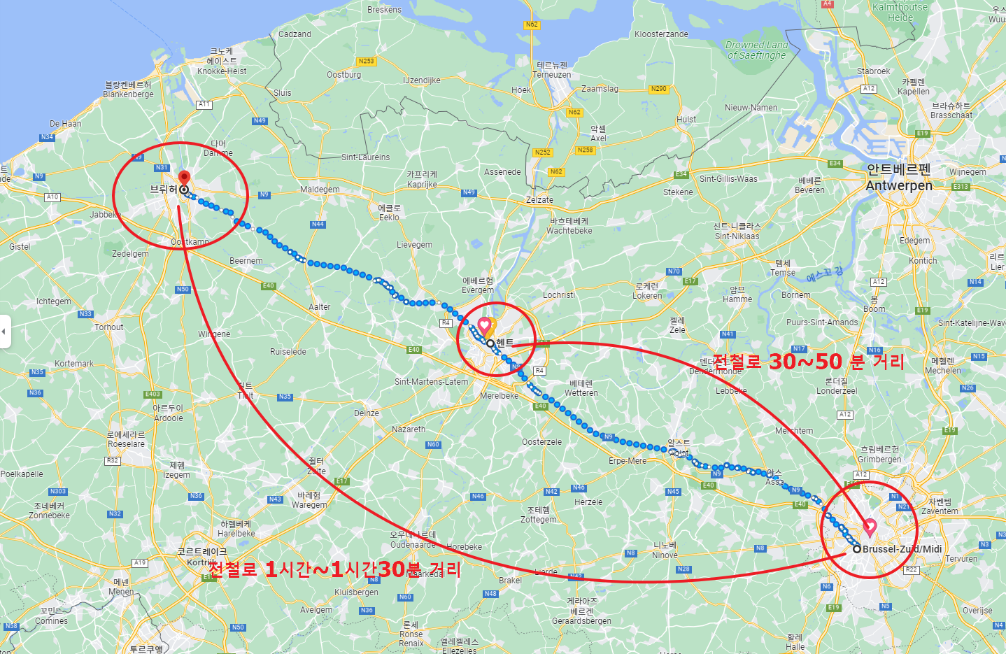 우리는 브뤼셀-미디역에서 내려서 구글맵보다가 우버를 타니 버스를 타니 고민하느냐 시간 좀 버렸다.