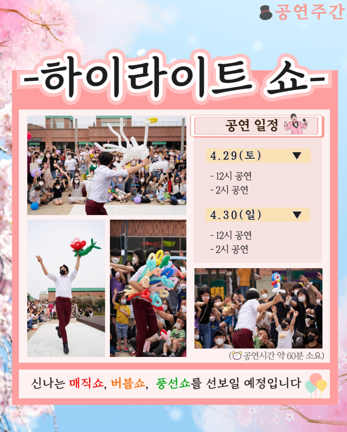매직쇼, 버블쇼, 풍선쇼 등등등