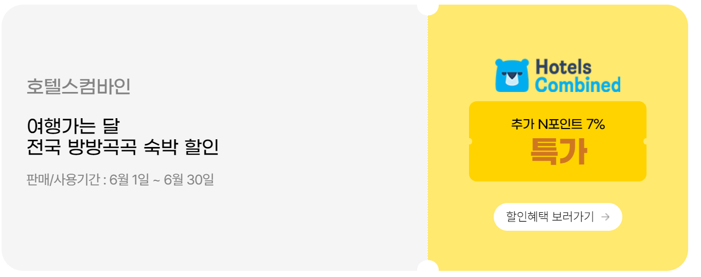 👉 국내호텔 '호텔에서 결제' 시 N포인트 7% 적립
